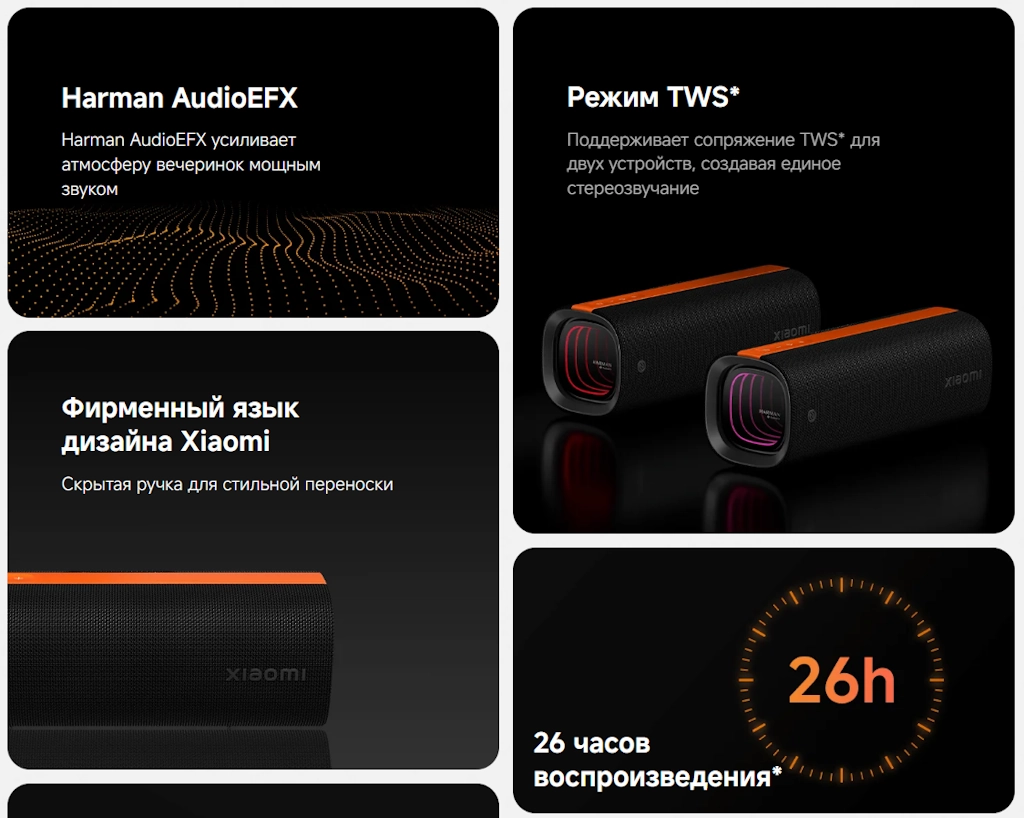 Xiaomi Sound Party создана, чтобы стать центром любой встречи — от домашних посиделок до масштабных праздников. Колонка обеспечивает насыщенное и детализированное звучание, которое легко наполняет пространство энергией и атмосферой настоящего концерта.