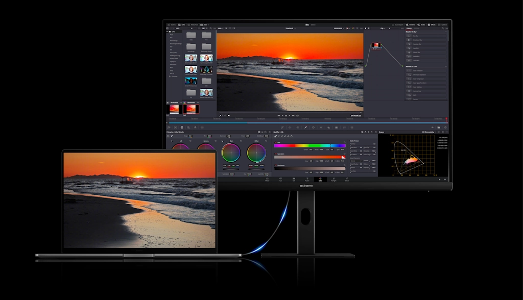 Монитор обеспечивает одинаковую цветопередачу с устройствами Xiaomi и Redmi, включая смартфоны и планшеты, для удобного переключения между экранами.