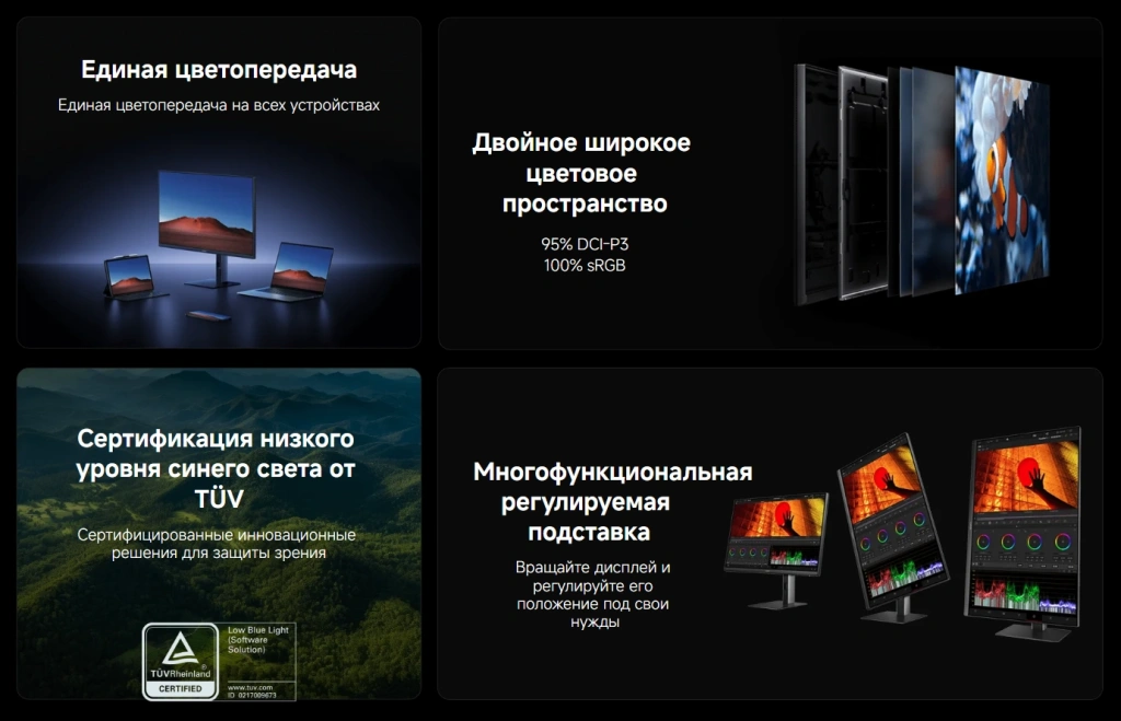 Каждый дисплей проходит заводскую калибровку с результатом ∆E<1, благодаря чему цветовые отклонения практически незаметны человеческому глазу.