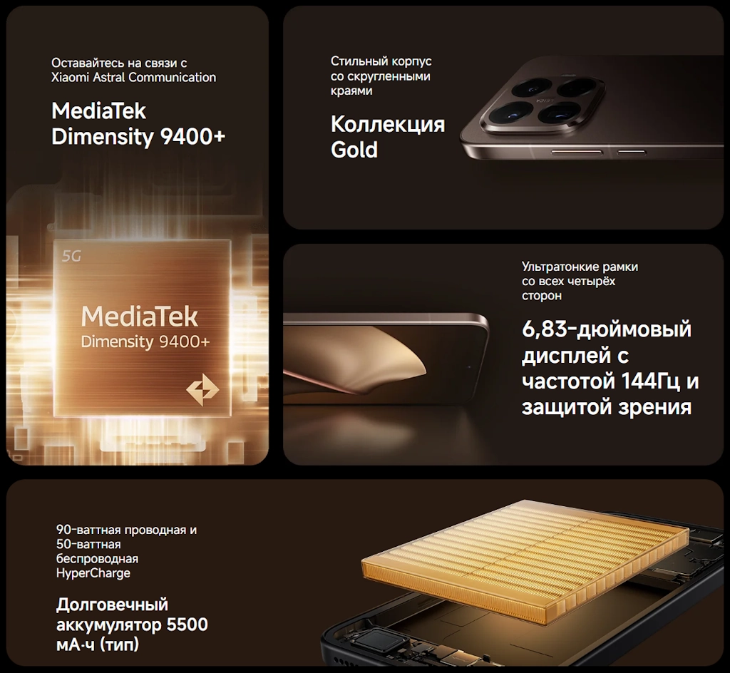 От смартфонов до носимых устройств — коллекция Gold воплощает единую концепцию дизайна. Эта цельная эстетика сохраняет единый язык стиля во всей экосистеме, обеспечивая премиальный опыт, который возвышен и неразрывно ассоциируется с Xiaomi.