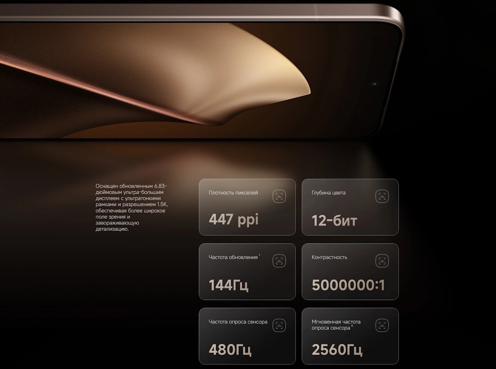 Благодаря технологии LIPO достигнута сверхузкая рамка в 1,5мм при соотношении экрана к корпусу 94,5%, что обеспечивает улучшенный визуальный и тактильный опыт.