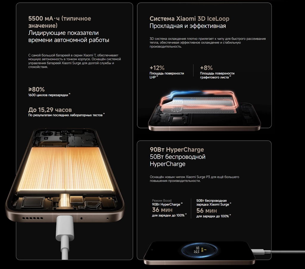 Благодаря собственному разработанному Xiaomi Surge T1S Tuner, Xiaomi 15T Pro оптимизирует сигналы Wi-Fi, Bluetooth, GPS и сотовой связи для более плавного и интеллектуального подключения.