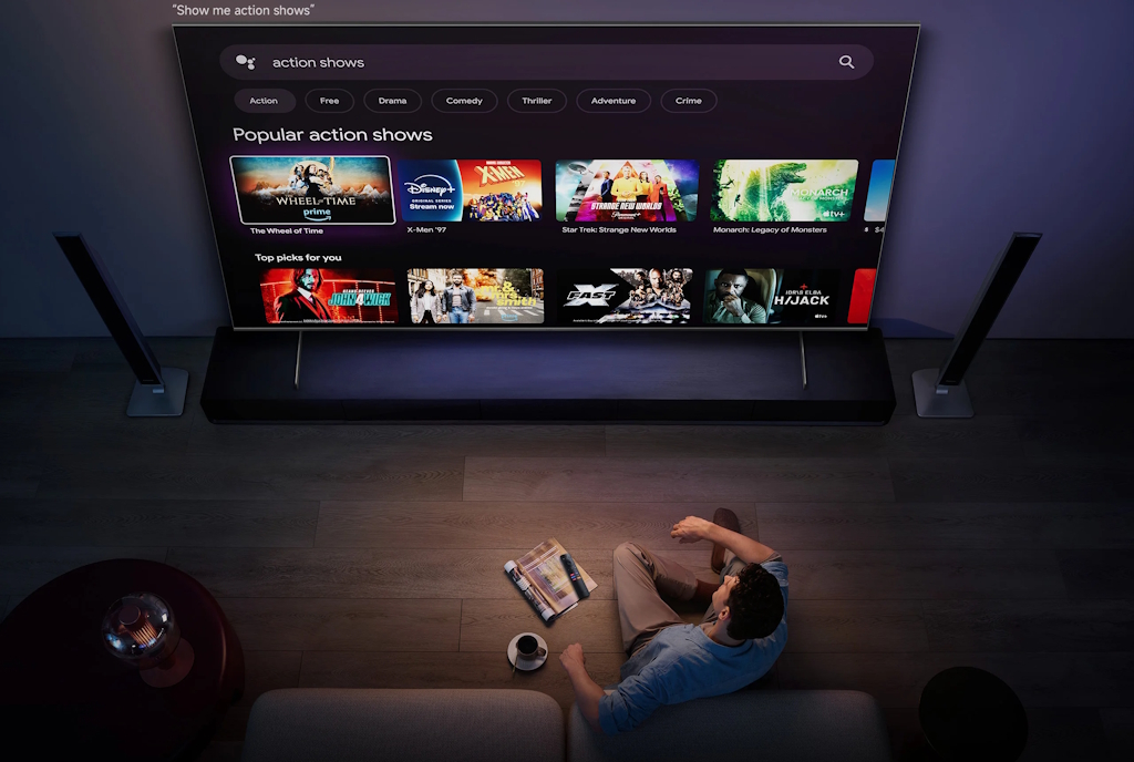 Скажите слово — и телевизор выполнит команду. С помощью встроенного Google Assistant вы можете искать фильмы, управлять умным домом или просто запускать любимые приложения голосом.