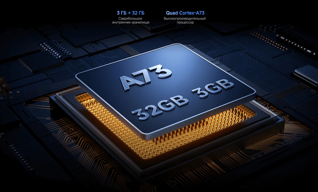 Флагманский процессор Quad Cortex A73 с AI-алгоритмами PQ и SR обеспечивает плавную работу, а большое встроенное хранилище позволяет устанавливать объёмные приложения без ограничений.