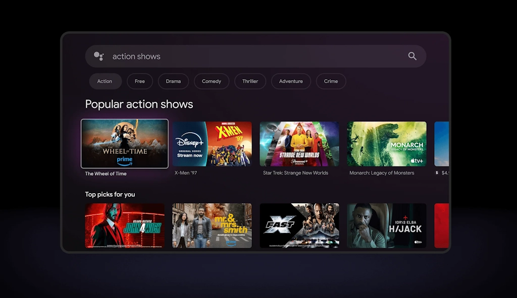 Нажмите кнопку на пульте, чтобы попросить Google Assistant найти фильм, запустить приложение, включить музыку или управлять умным домом. Всё это — без ввода текста, только голосом.