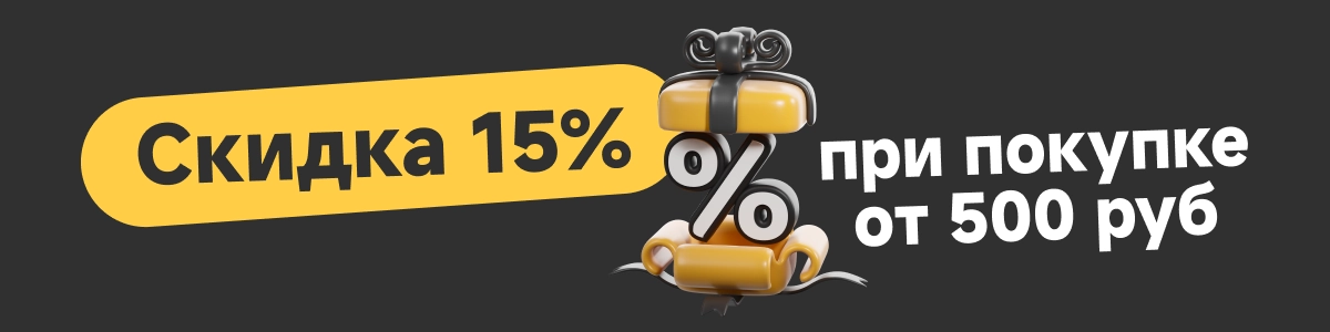 Цены указаны уже с учетом скидки в качестве примера. Итоговая сумма скидки считается при добавлении товаров на сумму от 500 рублей в корзину!