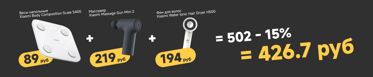 С 26 ноября по 3 декабря на подборку товаров Xiaomi действуют дополнительная скидка 15% при общей сумме покупке от 500 рублей.